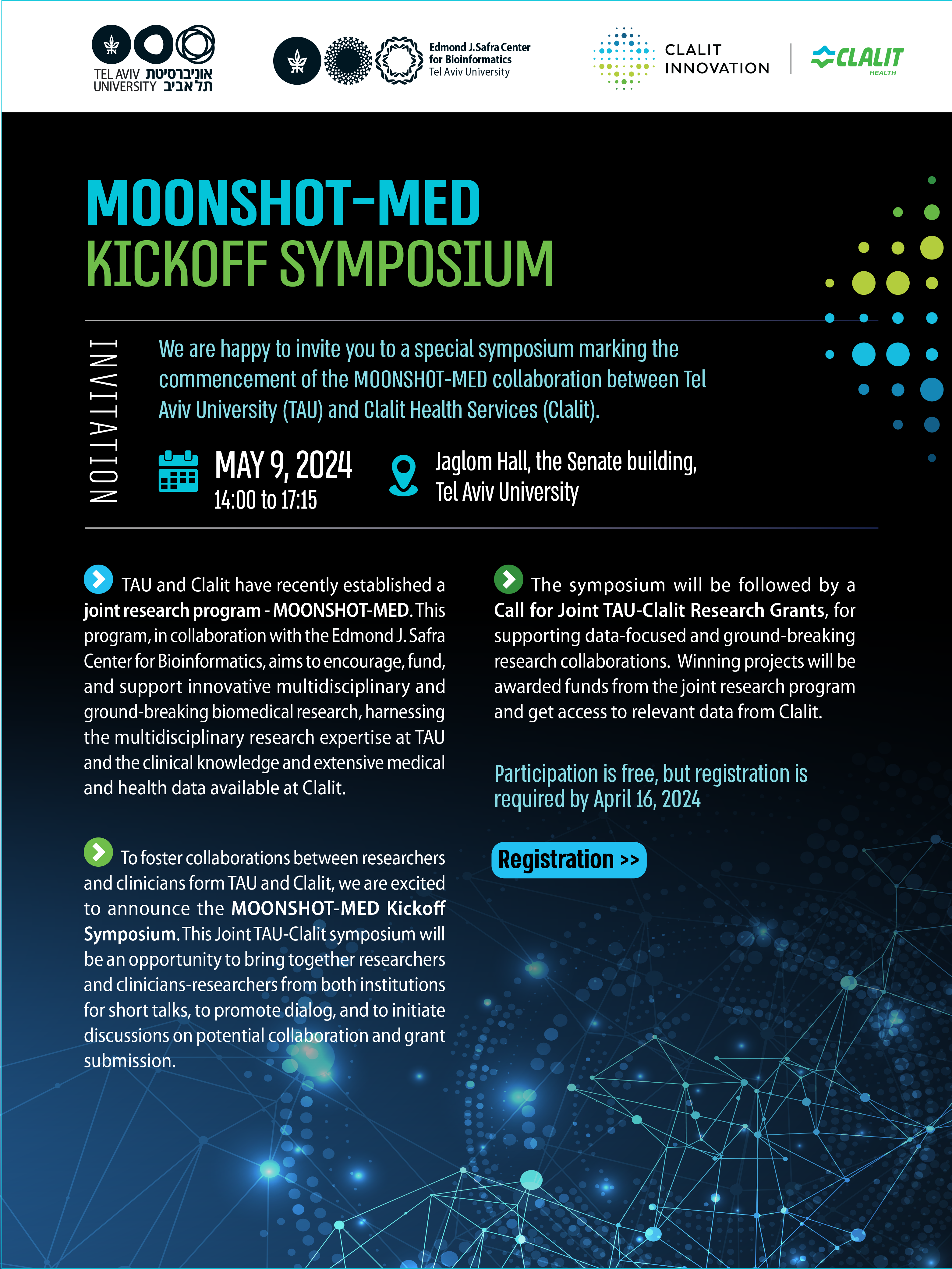 To foster collaborations between researchers and clinicians form TAU and Clalit, we are excited to announce the MOONSHOT-MED Kickoff Symposium.